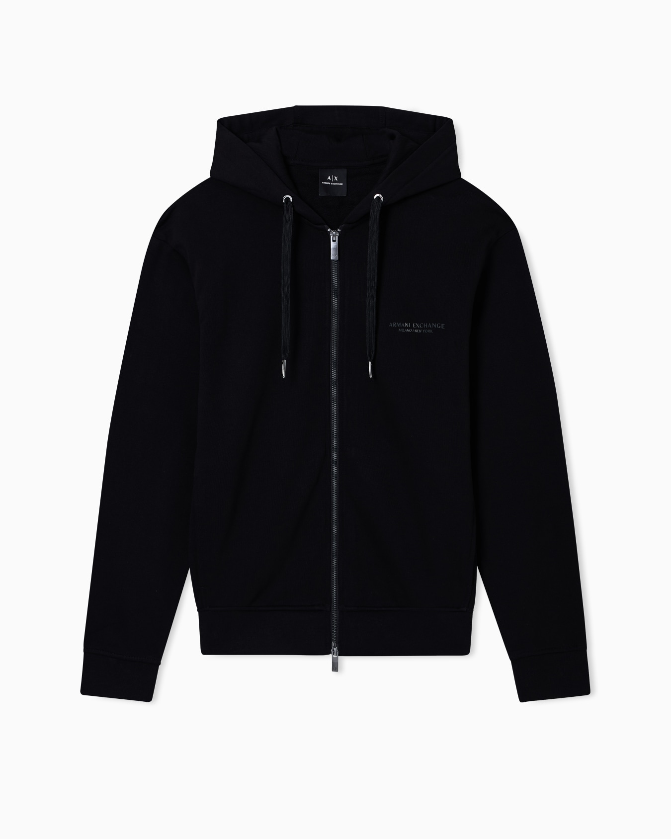 Felpa in cotone, vestibilità regular fit, cappuccio con coulisse regolabile, maniche lunghe, chiusura frontale con zip, dettaglio lettering tono su tono, polsini e orlo a costine.