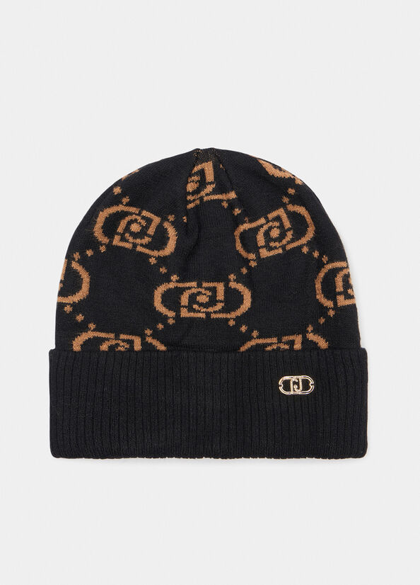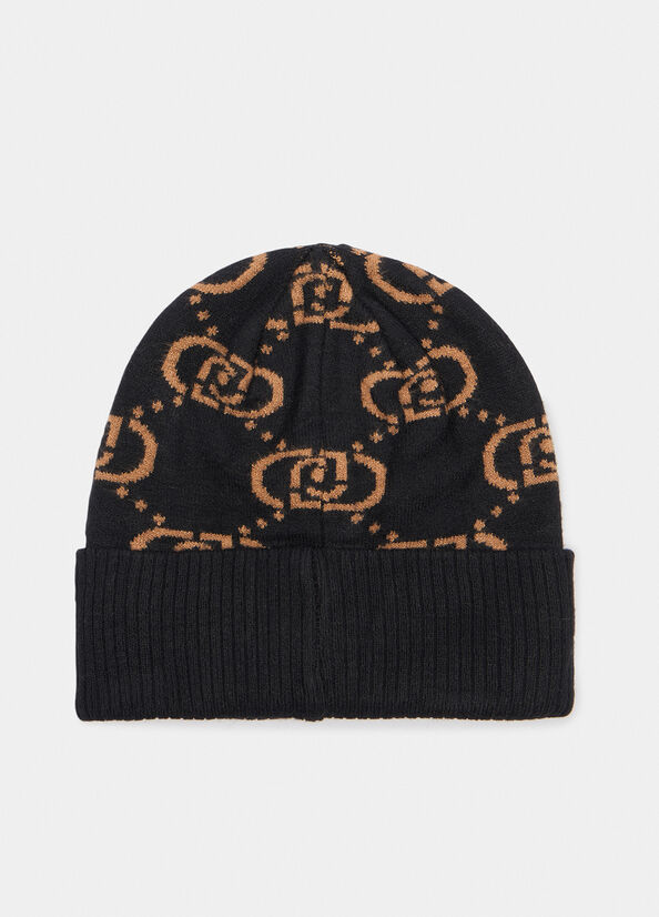 Cappello in monogrm jacquard in beanie, filati in misto viscosa, risvolto, logo in metallo.