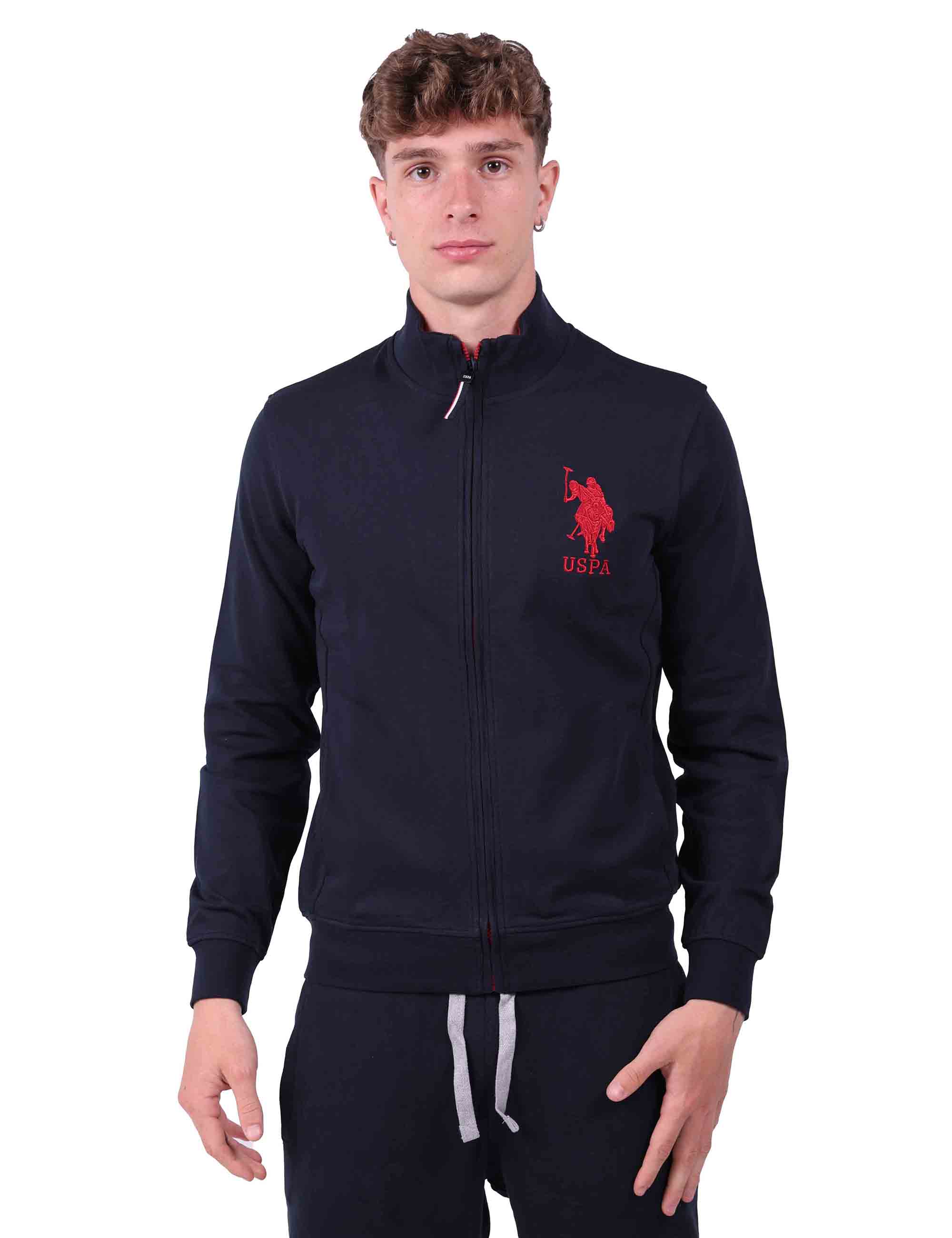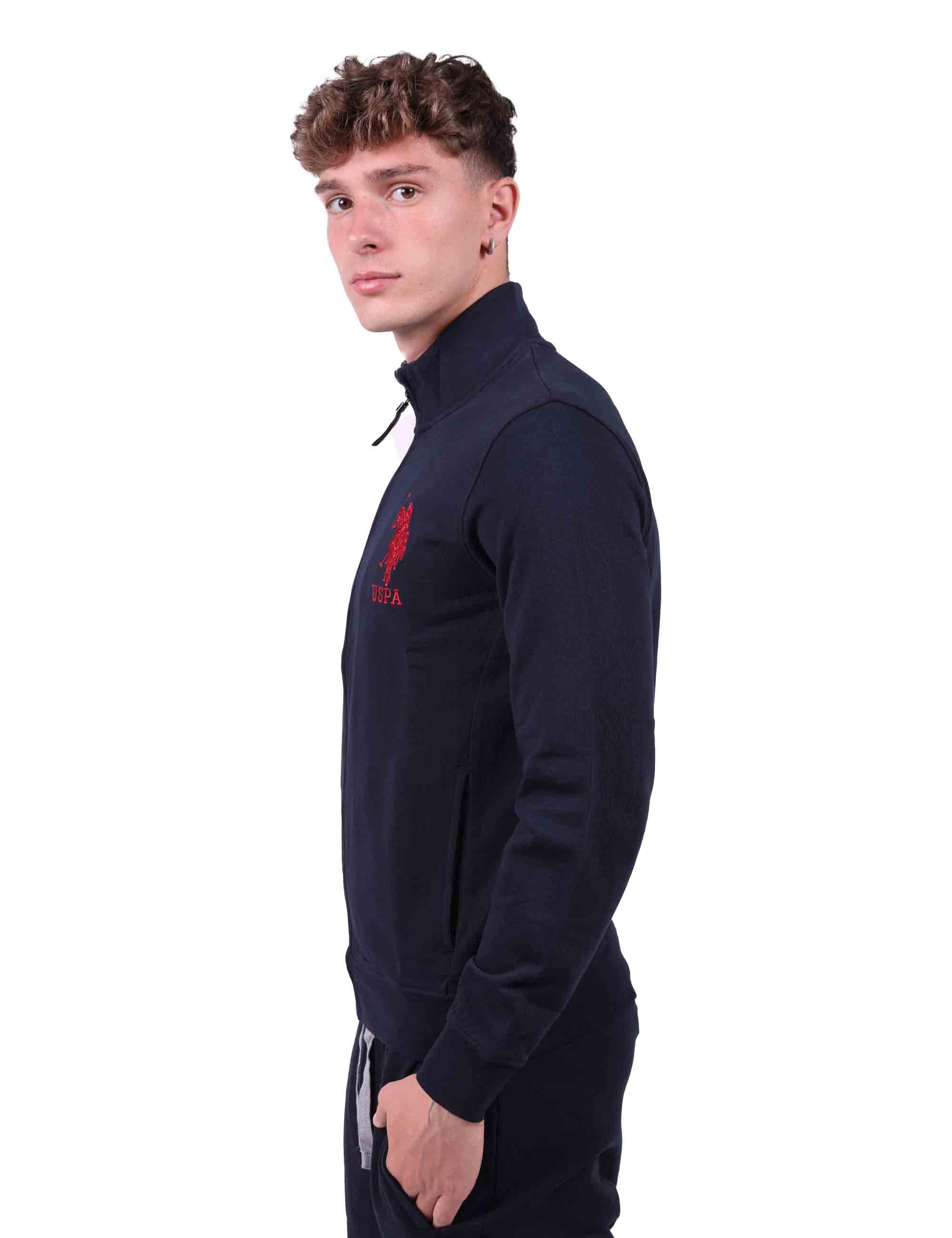 Felpa da uomo collo alto con chiusura zip in metallo , costina sul fondo e polsini per una maggiore aderenza, tasche laterali e ricamo del logo Double Horsemen lato cuore.