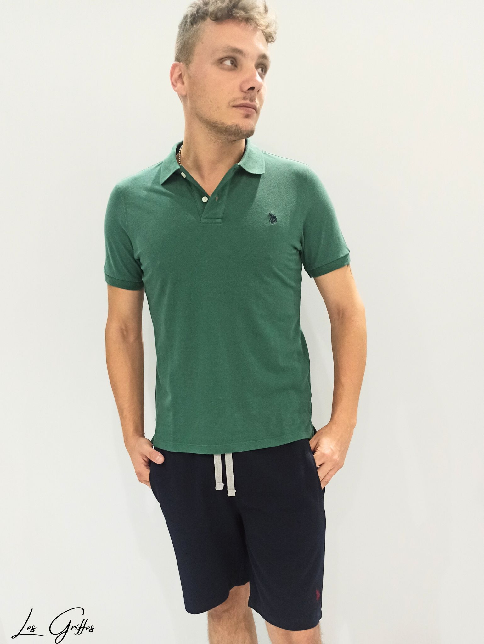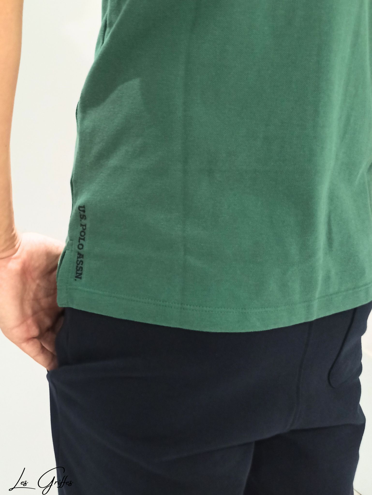 Polo Piquet in tinta unita a maniche corte di U.S. Polo Assn. con logo Double Horsemen, chiusrua due bottoni. Stampa scritta logo sull'angolo inferiore.